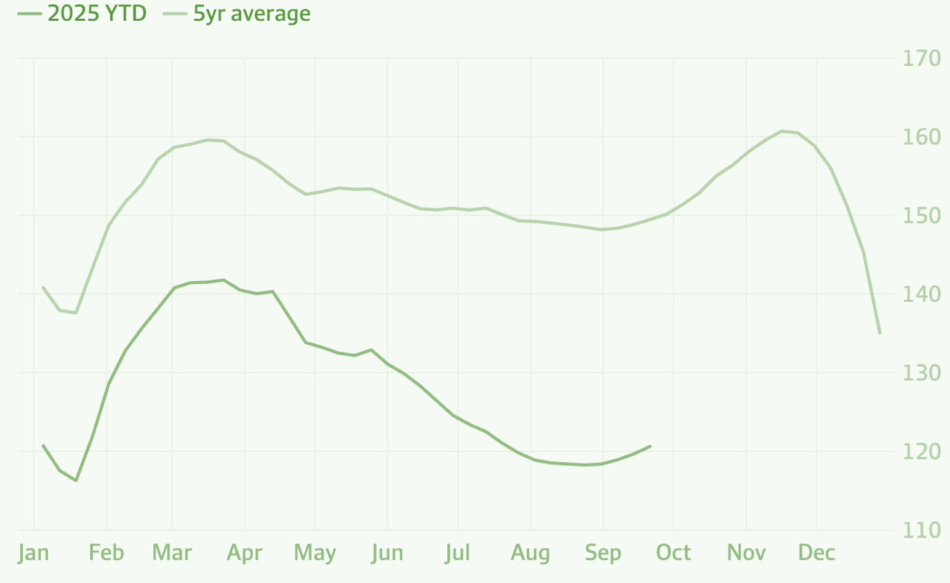 The supply-demand imbalance that has characterised Australia's property market throughout 2025 continues to intensify, with national listings sitting at 121,000 properties compared to the typical 150,000 expected for this time of year, representing a persistent 20% deficit. Meanwhile, estimates of sales activity through the September quarter tracked 7.3% above the previous five-year average, demonstrating a clear disconnect between supply and demand.